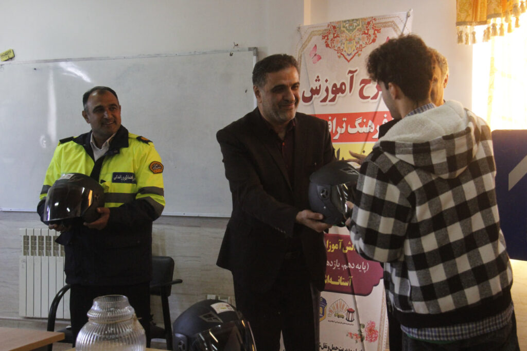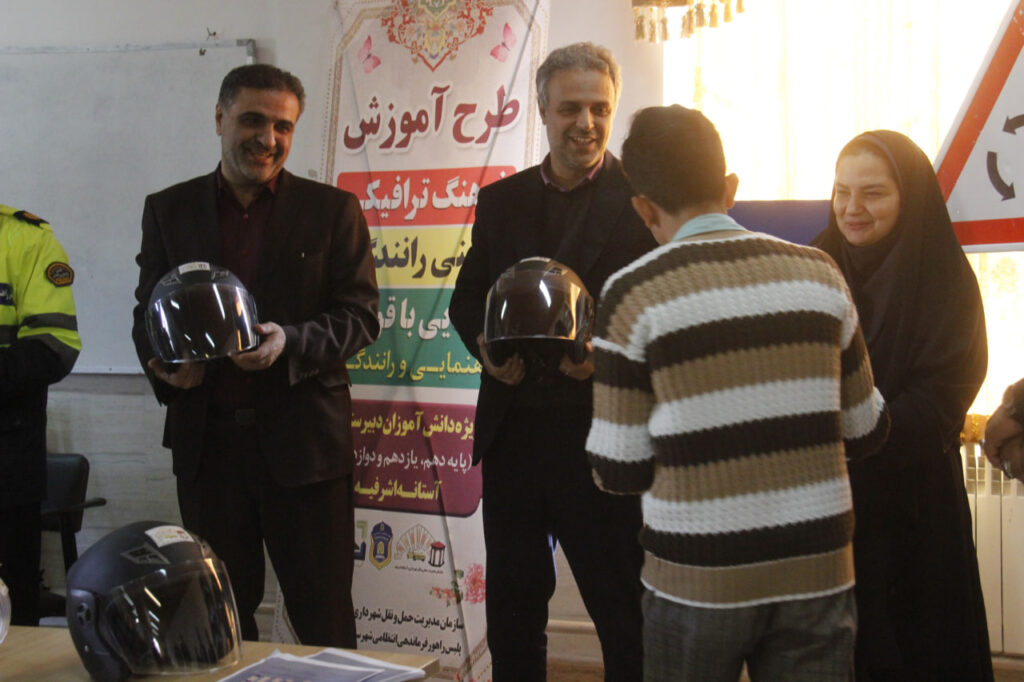 به گزارش پایگاه اطلاع‌رسانی شهرداری آستانه‌اشرفیه؛ آزمون طرح آموزش فرهنگ ترافیکی و ایمنی رانندگی صبح امروز با حضور مهندس عبدالحسین داداشی؛ شهردار آستانه‌اشرفیه، مهندس حبیب رمضانی؛ معاونت سیاسی، امنیتی و اجتماعی فرمانداری شهرستان، مهندس مجتبی شیرزاد رادجلالی؛ رییس سازمان مدیریت حمل‌ونقل شهرداری و سرگرد بهزاد دوهندو؛ رییس پلیس راهنمایی و رانندگی فرماندهی انتظامی شهرستان در مدرسه شهید رجایی آستانه‌اشرفیه برگزار و در پایان ضمن اخذ آزمون کتبی در راستای سنجش سطح آشنایی دانش‌آموزان با قوانین، به قید قرعه به ده نفر از دانش‌آموزان، با هدف افزایش ایمنی و توجه به سلامت راکبان موتورسیکلت، ترویج و نهادینه شدن فرهنگ استفاده از کلاه استاندارد و کاهش خطرات ناشی از حوادث ترافیکی، “کلاه کاسکت” اهدا شد.