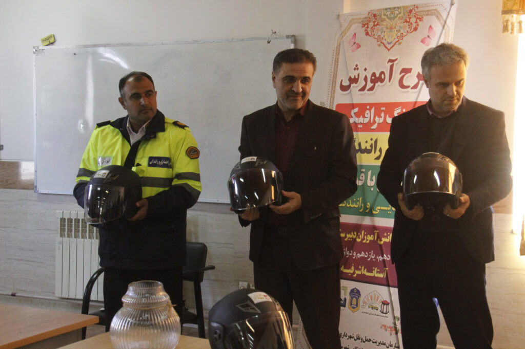 گفتی است این طرح آموزشی به همت سازمان مدیریت حمل‌ونقل شهرداری آستانه‌اشرفیه و با همکاری و مشارکت پلیس راهنمایی و رانندگی فرماندهی انتظامی شهرستان و اداره آموزش و پرورش شهرستان در راستای آموزش، فرهنگ‌سازی و آشنایی دانش‌آموزان دبیرستانی (دوره دهم، یازدهم و دوازدهم) با علائم و قوانین راهنمایی و رانندگی و وظایف شهروندی، یادگیری اصول ایمنی و همچنین ارتقا و ترویج فرهنگ درست ترافیکی و قانون پذیری در مقابل ترافیک و انتقال آن از دانش‌آموزان به خانواده بمنظور کاهش تصادفات و خطرات ترافیکی، آشنایی با عواقب ناشی از تخلفات رانندگی و عبور و مرور ایمن عابرین پیاده، آشنایی با تجهیزات تابلوها و علائم هشدار دهنده ترافیکی، آشنایی با قوانین و رفتارهای صحیح شهروندی در حوزه ترافیک و سایر مسائل مربوط به حوزه ایمنی ترافیک و فرهنگ سازی، در سطح مدارس آستانه‌اشرفیه آغاز گردیده و در آینده نیز تداوم خواهد داشت.