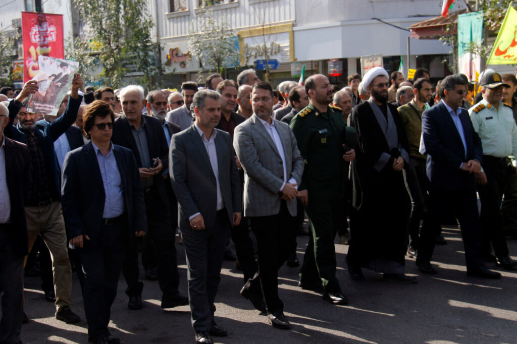 به گزارش پایگاه اطلاع رسانی شهرداری آستانه‌اشرفیه؛ راهپیمایی یوم‌الله سیزدهم آبان؛ روزملی مبارزه با استکبار جهانی صبح امروز با شعار محوری «متحد و استوار، مقابل استکبار» هم‌زمان با سراسر کشور (بیش از ۹۰۰ شهر) در حمایت از مردم مظلوم و بی‌دفاع فلسطین و لبنان و محکومیت جنایت رژیم غاصب و کودک‌کش صهیونیستی، با حضور گسترده دانش‌آموزان، دانشجویان، فرهنگیان و اقشار مختلف مردم شریف، بصیر، ولایتمدار، مومن، متدین، انقلابی و شهید پرور آستانه‌اشرفیه، خانواده‌های معظم شهدا، جانبازان، آزادگان و ایثارگران، حجت الاسلام والمسلمین دکتر احمدطیبی؛ امام جمعه محترم شهرستان، مهندس رحمت حیدری‌نژاد؛ فرماندار محترم شهرستان، علیرضا پشته؛ ریاست محترم دادگستری شهرستان، محمد حسین محسنی؛ دادستان محترم عمومی و انقلاب شهرستان، مهندس عبدالحسین داداشی؛ شهردار آستانه‌اشرفیه، مهندس وحید قربانی؛ ریاست شورای اسلامی شهر، مهندس عباس‌عالم، مهندس حسن حبیب‌پور، دکتر محمدصادق مقدادی و سیدعباس نورحسینی؛ اعضای شورای اسلامی شهر آستانه‌اشرفیه، اعضای محترم شورای تامین، فرماندهان نظامی و انتظامی، امامان محترم جماعت، اساتید و طلاب حوزه علیه شهرستان، روسای ادارات، مدیران و پرسنل شهرداری، بسیجیان، ورزشکاران، اصناف، کسبه، بازاریان و… از کانون بسیج تا آستان مقدس حضرت سلطان سیدجلال الدین اشرف علیه‌السلام برگزار و در پایان این مراسم، قطعنامه راهپیمایی یوم‌الله سیزدهم آبان؛ روزملی مبارزه با استکبار جهانی در اجتماع مردمی قرائت شد.