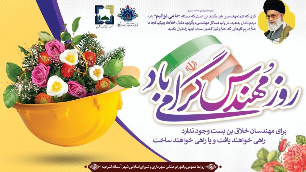 اینجانب ضمن تقدیر و تشکر از زحمات تلاش‌گران عرصه مهندسی کشور، این روز پرافتخار را به همه مهندسان کشور، استان گیلان، جامعه مهندسی شهرستان و بویژه مهندسان و همکاران متعهد و خدمتگذار مجموعه شهرداری آستانه‌اشرفیه تبریک عرض نموده و توفیقات روزافزون این قشر پرتوان را در کمک به توسعه و پیشرفت میهن اسلامی از درگاه خداوند متعال خواستاریم.